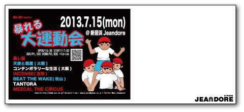 天使と悪魔(大阪)/ コンテンポラリーな生活(大阪)/INCENSE(鳥取)/ BEAT THE WAKE(松山)/ TANTORA / 暴レ猿 /