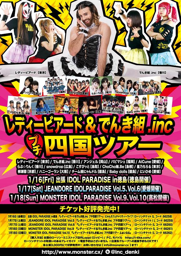 レディービアード(東京) / でんき組.inc(香川) / アンジェル(岡山) / らぶ☆りんく(香川) / パピヨ デ マルシェ(福岡) / こすぴッと(島根) / ChoCho娘.Be(島根) / チーム娘にゃんドル(徳島) / 星乃ちろる(東京) / 柳瀬蓉(京都) / ハニーゴーラン(大阪) / にいひめ(愛媛) / AiCune(愛媛) /