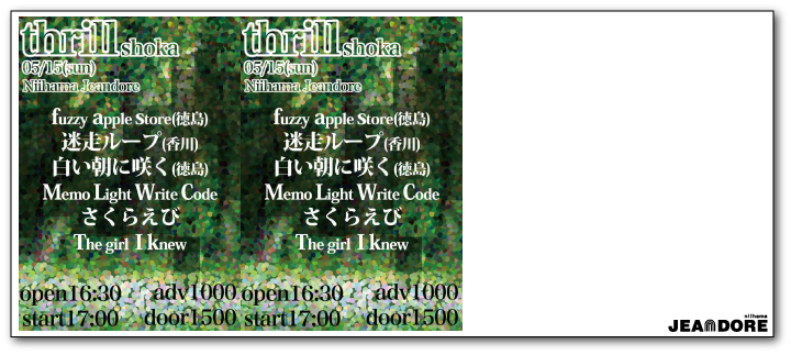 fuzzy apple store (徳島) / 白い朝に咲く (徳島) / 迷走ループ (香川) / Memo Light Write Code / さくらえび / The girl I Knew /